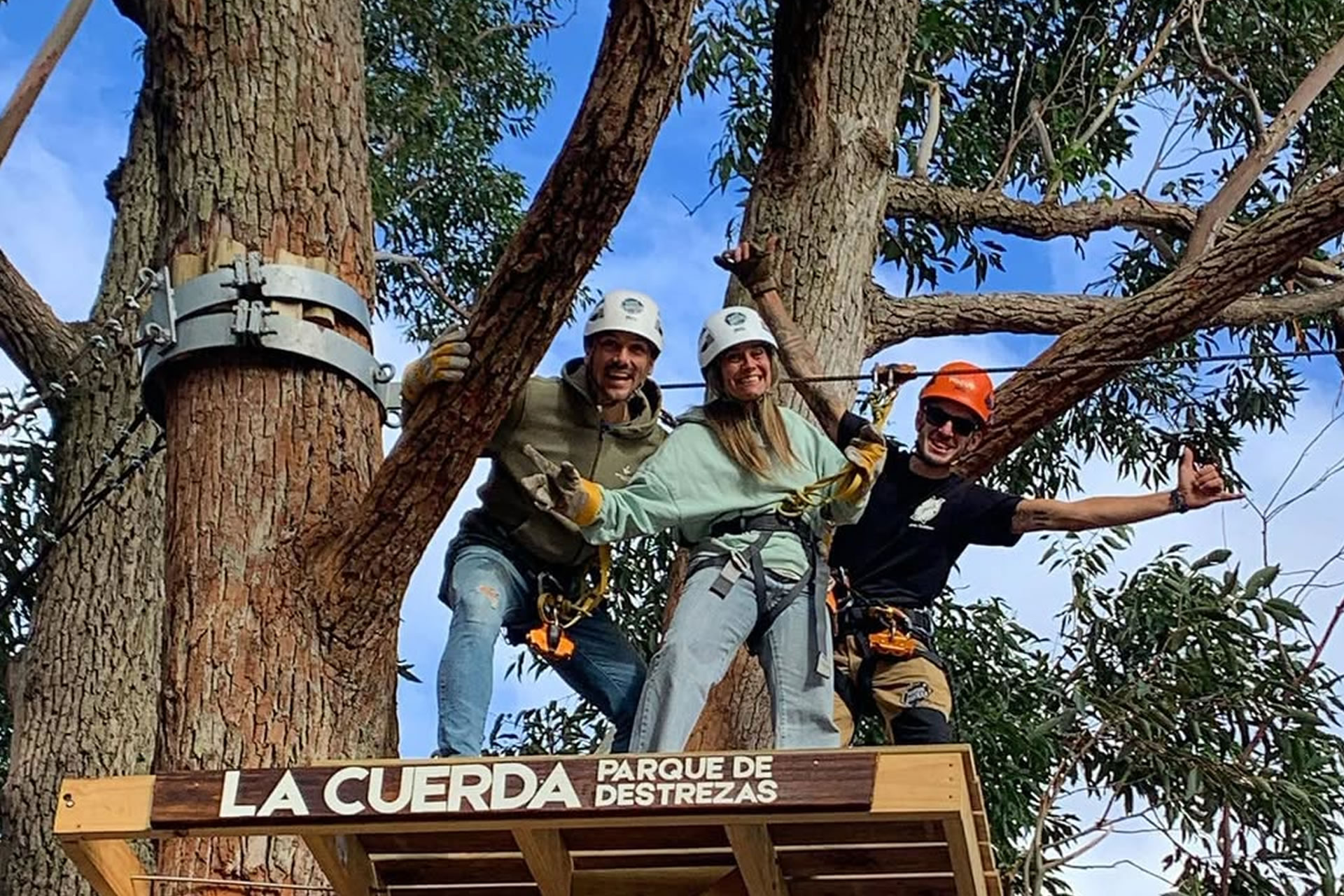 Características: Un juego al aire libre – no motorizado, 2 cables de 120 metros cada uno con linga de 6x19 con alma de acero, prensa cables de alta resistencia, anillas de hierro (Certificación europea) y respaldo a tierra a un anclaje de hormigón de 1x1,5x1 y 15 tramos de puentes colgando, construidos con linga de 10mm, 6x19 alma textil, prensa cables, cuerdas, redes, madera y cubiertas. Utilizando equipamiento línea PETZL. Pasaporte Aventura cuenta con certificación internacional para construcción y gestión en esta clase de propuestas.